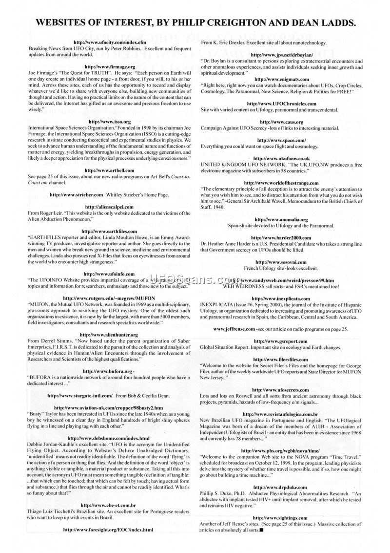 WEBSITES OF INTEREST, BY PHILIP CREIGHTON AND DEAN LADDS; WHAT ARE THE CREATURES SEEN RECENTLY IN PUERTO RICO? BY JORGE MARTÍN