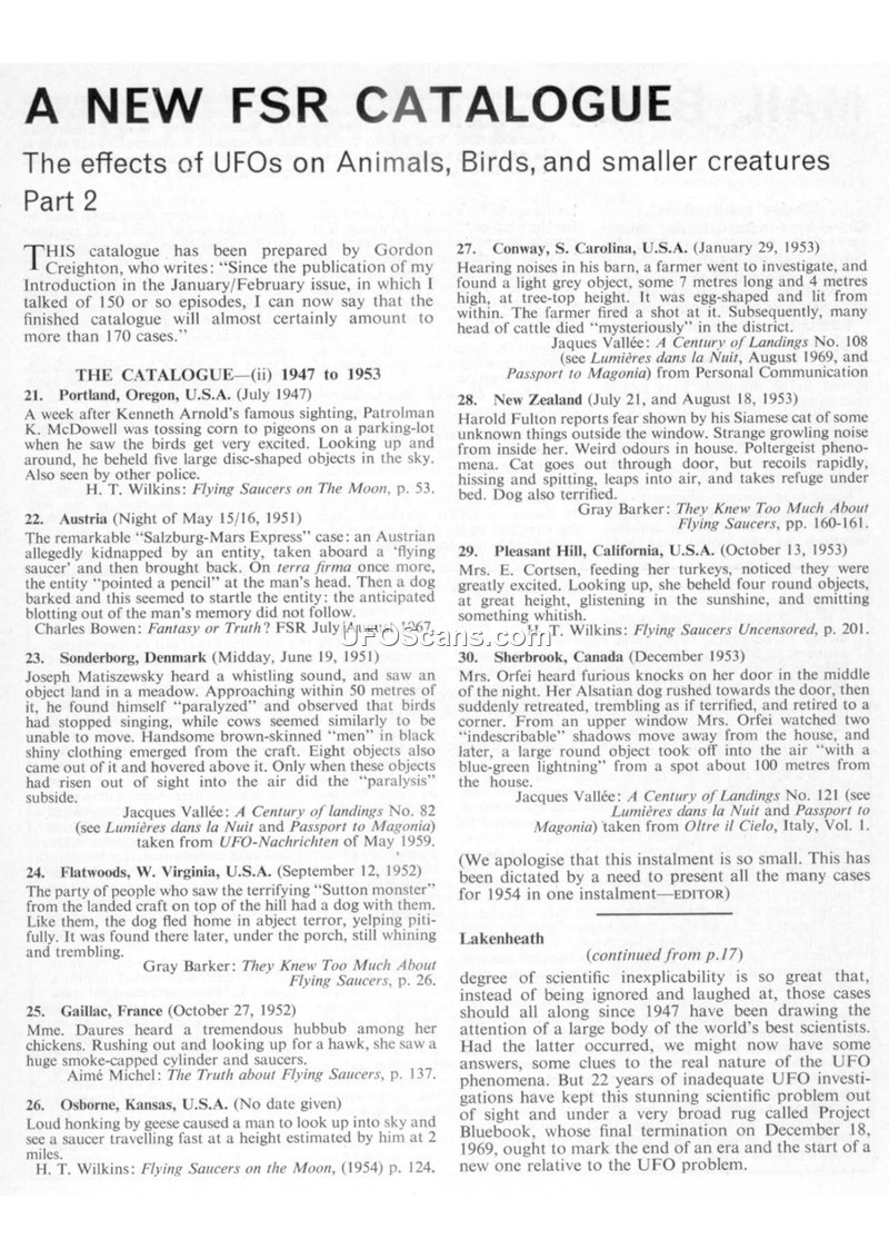 A NEW FSR CATALOGUE: The effects of UFOs on Animals, Birds, and smaller creatures Part 2