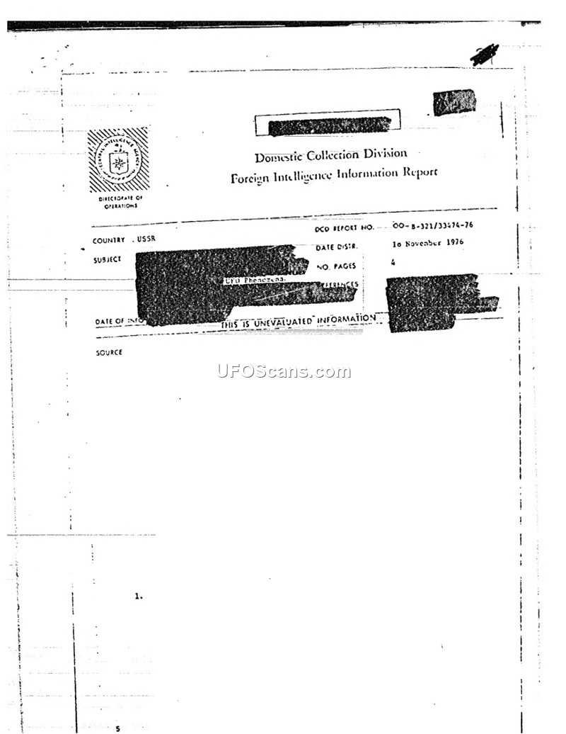 Foreign Intelligence Information Report: UFO Phenomena