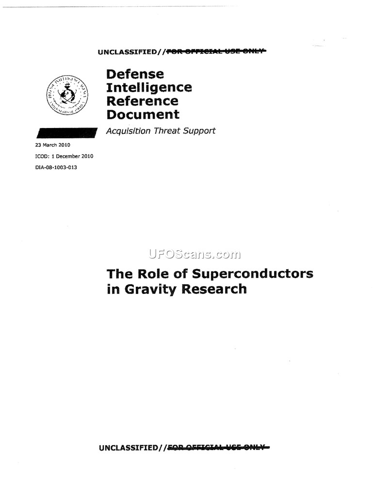 This document is a 2010 DIA reference report surveying the history and scientific status of using superconductors for gravity manipulation. It concludes that experimental evidence remains inconclusive and controversial, with many reported effects likely attributable to measurement errors or artifacts.