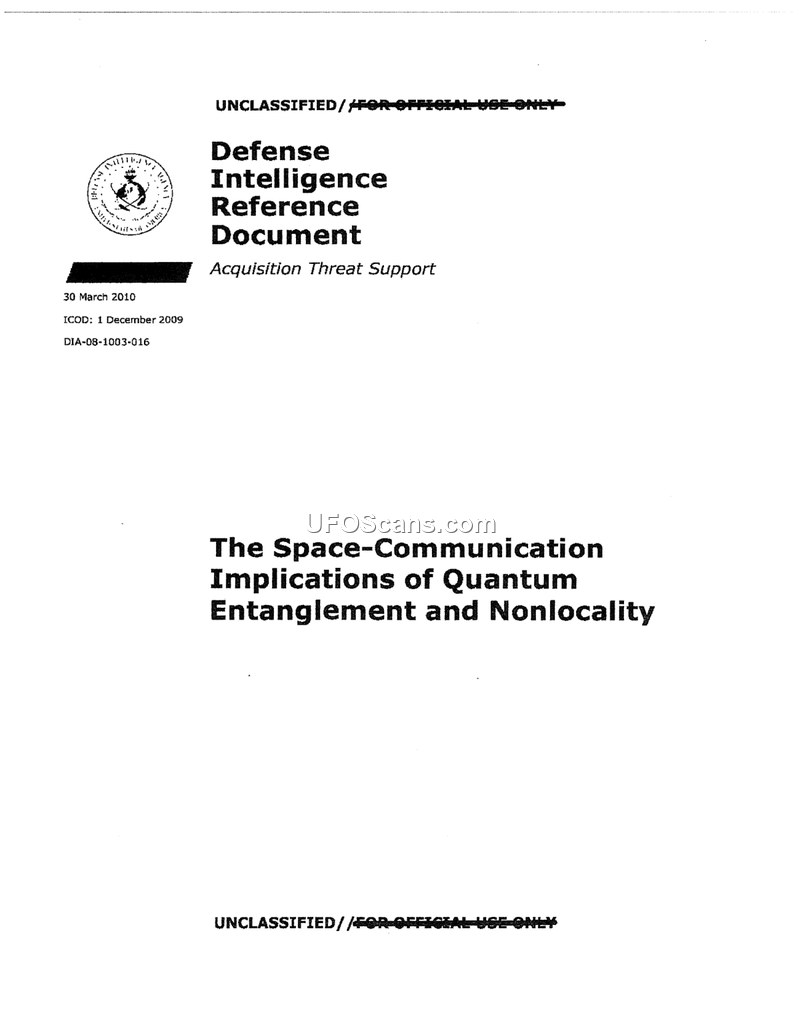 This Defense Intelligence Reference Document, produced under the Advanced Aerospace Weapon System Applications (AAWSA) Program in 2010, provides a technical assessment of the potential for using quantum entanglement and nonlocality to facilitate space-based communication. The author notes that current space communication is severely limited by the speed of light, resulting in significant time delays for interplanetary operations. The paper investigates whether quantum phenomena could provide a mechanism for superluminal or retrocausal signaling, which would theoretically allow for real-time control of remote assets like Mars rovers.