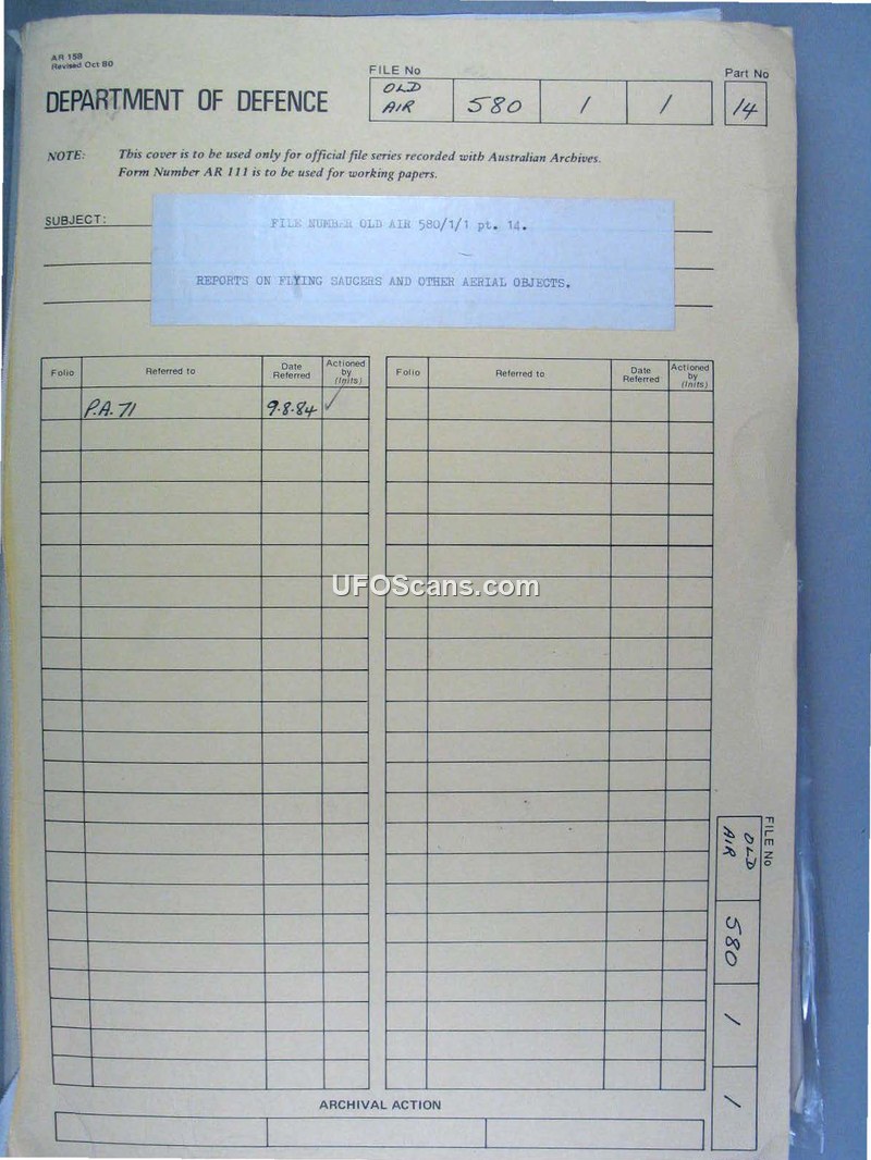 Reports on Flying Saucers and Other Aerial Objects (File 580/1/1, Part 14)