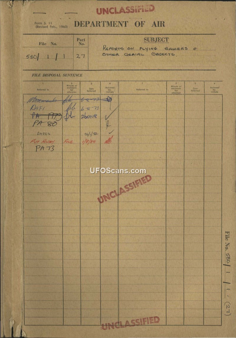 Reports on Flying Saucers & Other Aerial Objects - File 580/1/1 Pt 27