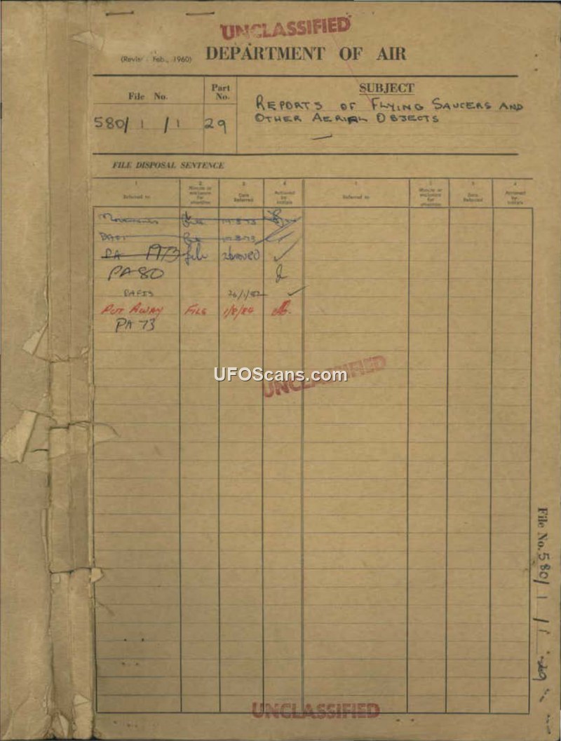 Reports of Flying Saucers and Other Aerial Objects - File 580/1/1 Pt 29