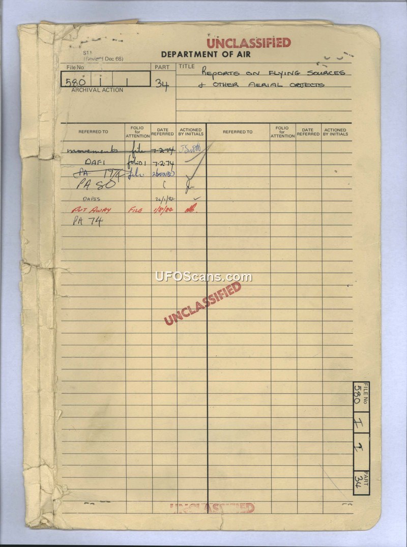 Reports on Flying Saucers & Other Aerial Objects - File 580/1/1 Part 34