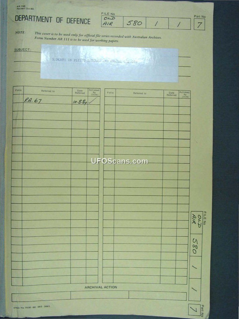 This archive contains RAAF correspondence and standardized sighting reports from 1967 regarding Unidentified Flying Objects in Australia. It documents the military's administrative process for investigating civilian reports and coordinating with civil aviation and meteorological authorities.