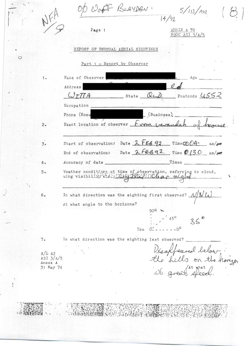 This document compiles multiple UAP sighting reports submitted to the RAAF in Queensland between 1989 and 1992. It includes witness descriptions, police correspondence regarding video evidence, and unrelated personal documents.