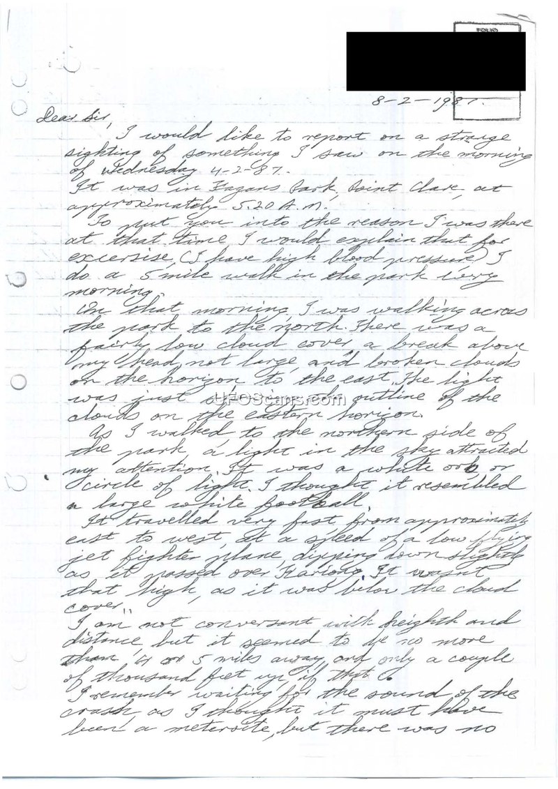 Compilation of Unusual Aerial Sighting Reports and RAAF Correspondence, 1987