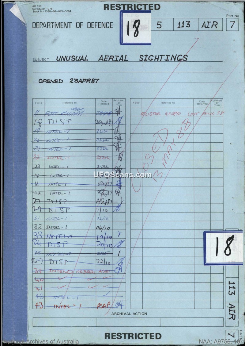 Unusual Aerial Sightings File — Department of Defence