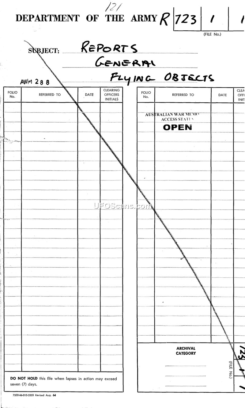 An Australian Military Forces report from 1966 confirms that an investigation into an unidentified flying object failed to identify its source. The military commander ordered that general enquiries continue.