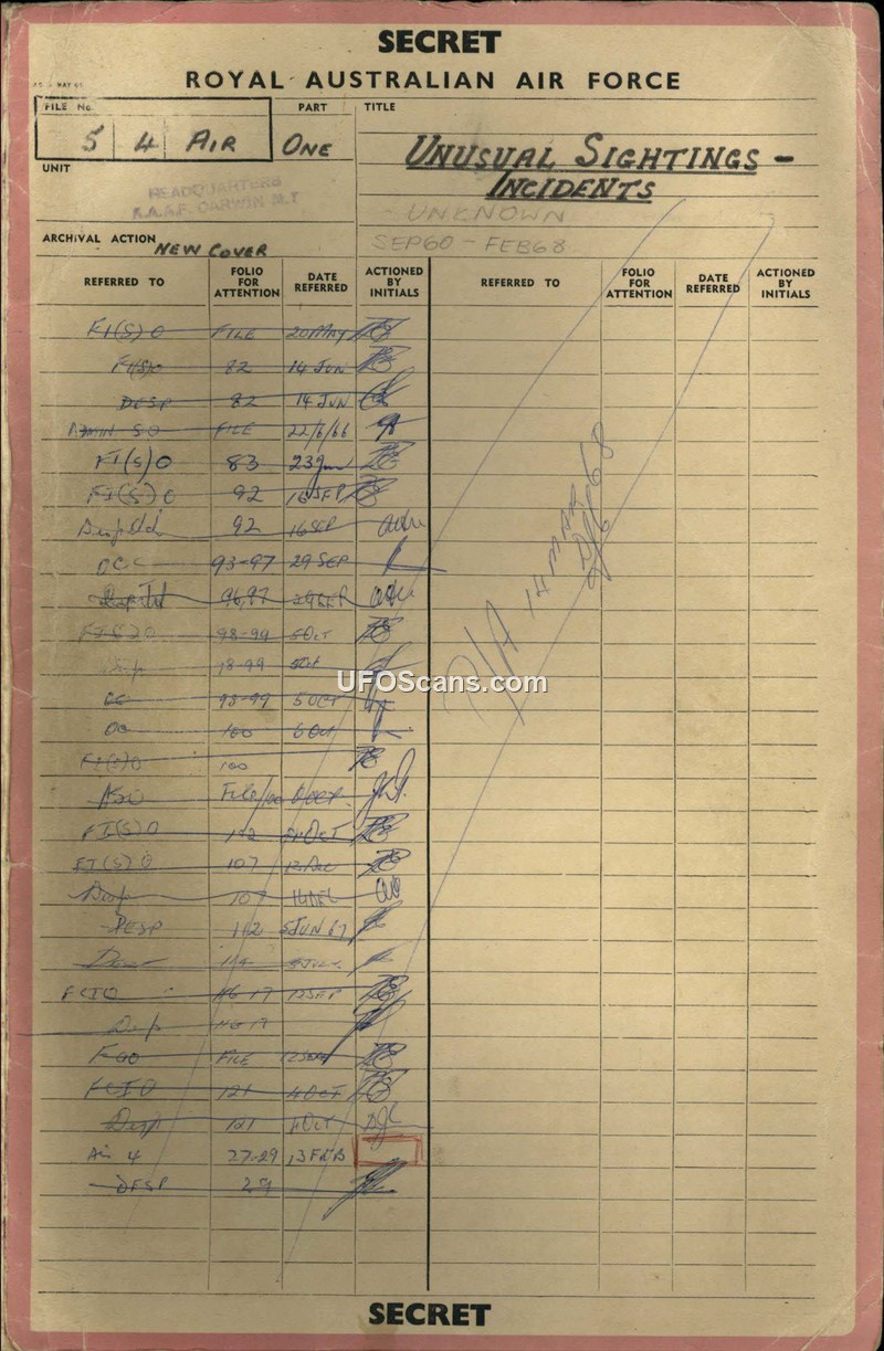 Royal Australian Air Force Unusual Sightings Incidents (1960-1968)