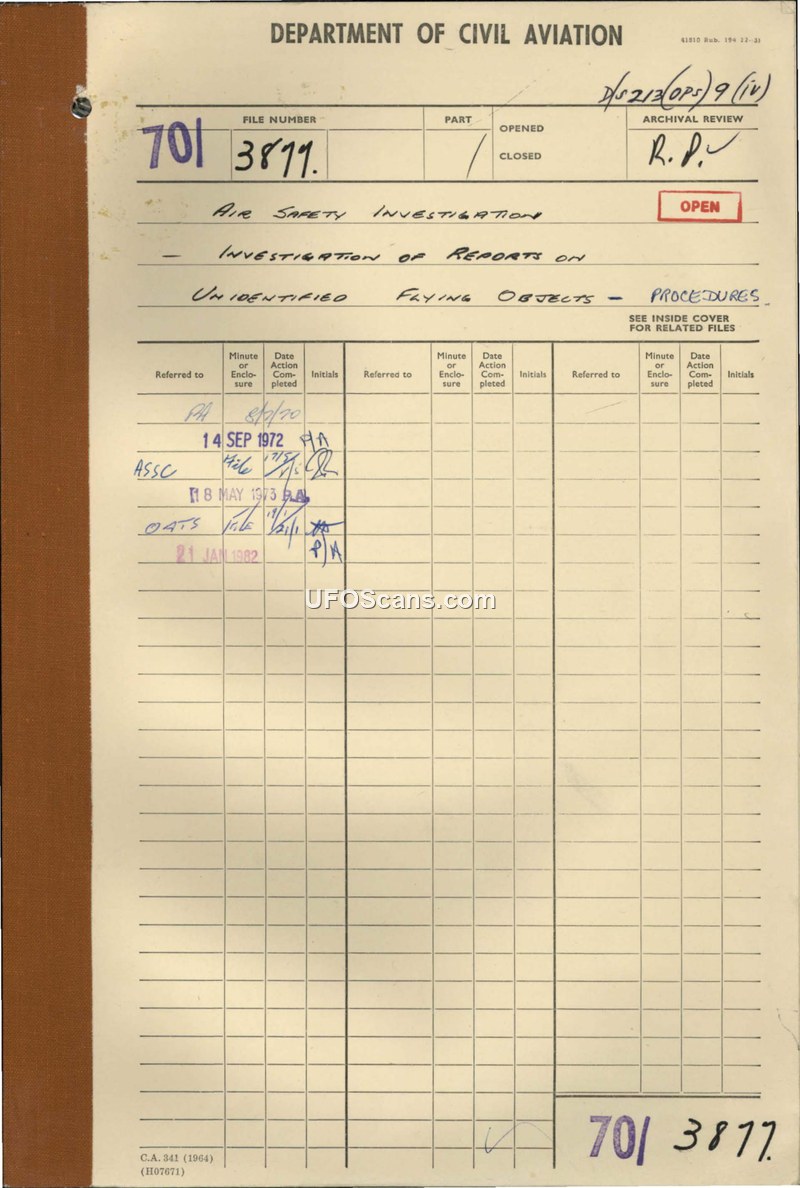 This memorandum establishes the formal cooperation between the Department of Civil Aviation and the Royal Australian Air Force for the investigation of UFO reports. It mandates that all such reports received by civil aviation authorities be referred to the R.A.A.F. for assessment.