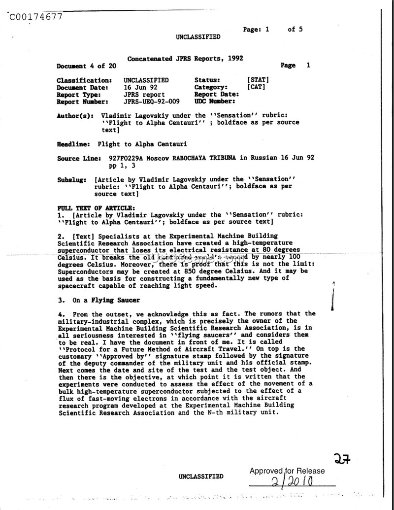 A 1992 JPRS report detailing Russian research into high-temperature superconductors for use in advanced spacecraft propulsion. The researchers claim these technologies could enable interstellar travel to Alpha Centauri.