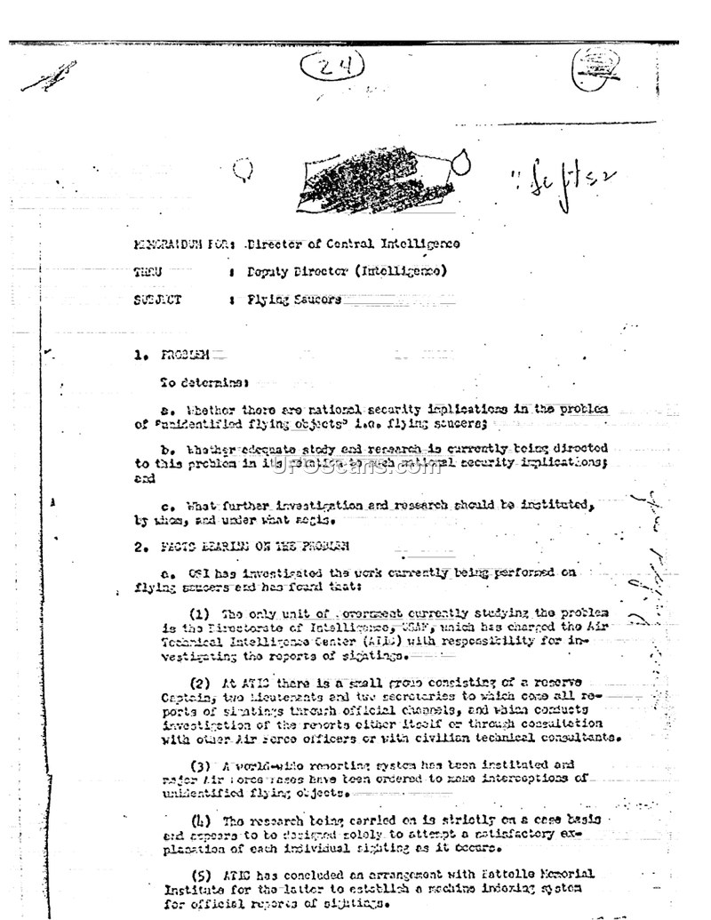 Memorandum for the Director of Central Intelligence: Flying Saucers