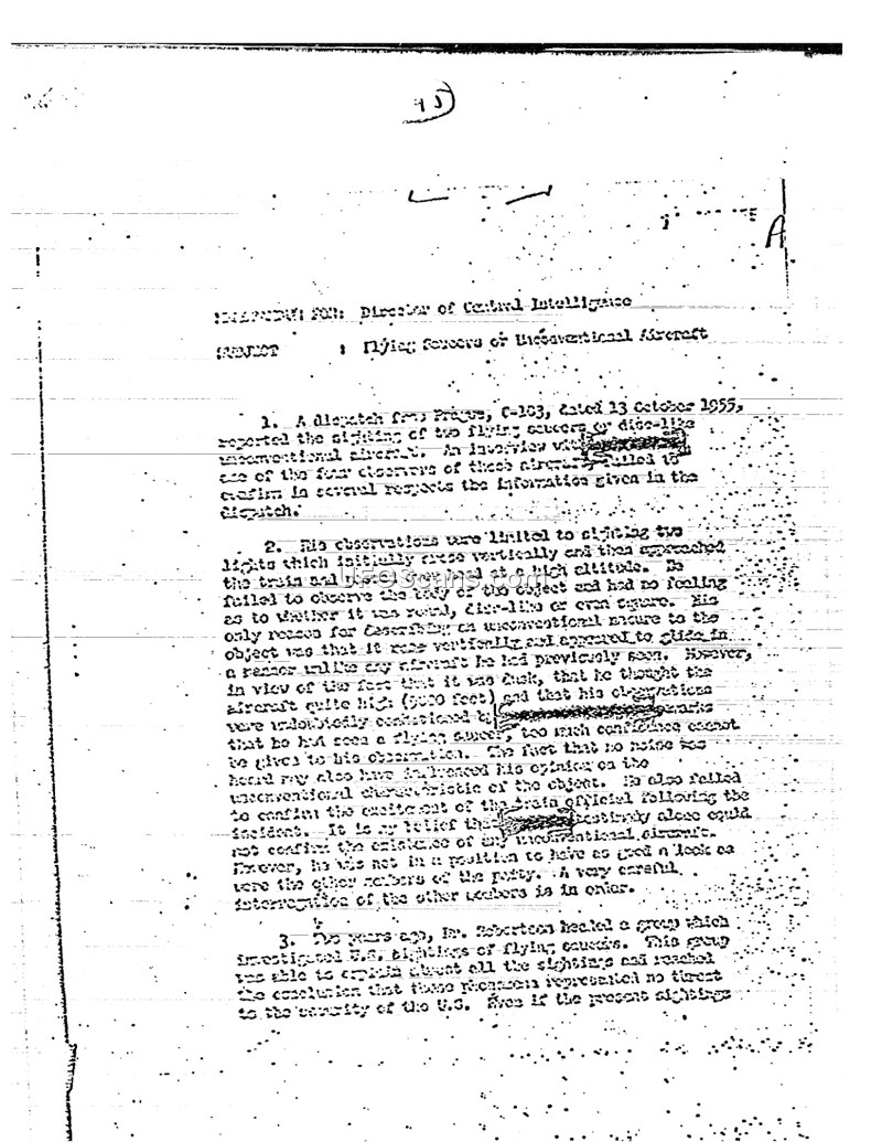 The document notes that a previous group headed by Mr. Robertson concluded that sightings represented no threat to the security of the U.S.