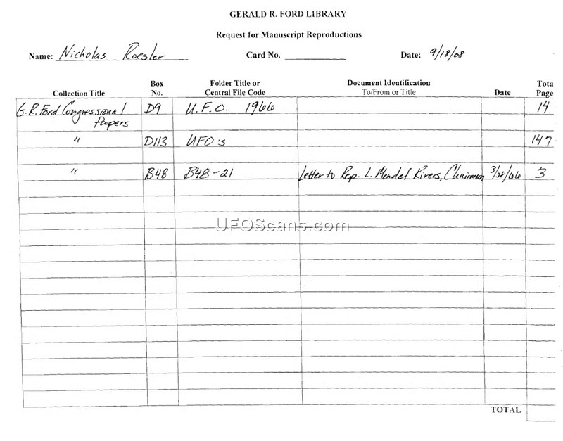 This document is a collection of materials from the Gerald R. Ford Library, primarily documenting Congressman Gerald R. Ford's efforts in 1966 to initiate a congressional investigation into Unidentified Flying Objects (UFOs). The collection includes correspondence from Ford to the chairmen of the House Armed Services Committee and the House Science and Astronautics Committee, as well as several news releases issued by Ford's office. Ford's primary motivation was the public alarm caused by a series of UFO sightings in Michigan in March 1966, which the Air Force, through consultant Dr. J. Allen Hynek, dismissed as swamp gas, student pranks, or misidentified astronomical phenomena. Ford argued that the American public deserved a more thorough and credible investigation than the Air Force had provided. The document also contains official Air Force news releases, including the announcement of a research agreement with the University of Colorado to conduct independent investigations into UFO reports under Project Blue Book, directed by Dr. Edward U. Condon. The archive includes various press clippings and reports detailing specific sightings, such as those in Exeter, New Hampshire, and Dexter, Michigan, and highlights the ongoing tension between public interest in UFOs and the Air Force's dismissive stance. The materials reflect a period of significant public and political debate regarding the transparency and scientific rigor of the Air Force's UFO investigation program.