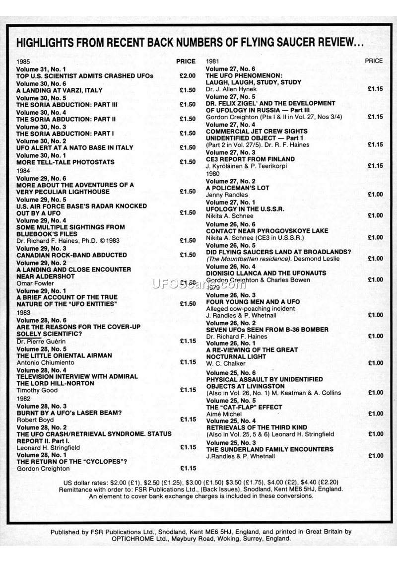 Flying Saucer Review, Volume 31, No. 2 (January 1986)