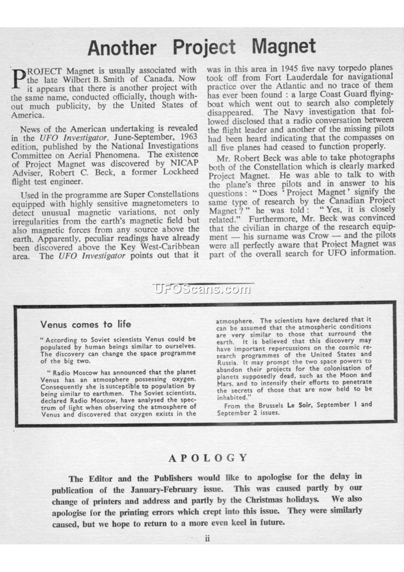 This issue of the Flying Saucer Review (March-April 1964) serves as a forum for the ongoing debate regarding 'Orthoteny'—the theory proposed by Aimé Michel that UFO sightings often occur along straight lines. The magazine features a direct exchange between Aimé Michel and Dr. Donald H. Menzel, a prominent skeptic and Harvard astrophysicist. Menzel argues that Michel's statistical methods are flawed, suggesting that the straight-line patterns are the result of random chance and subjective selection of data. Michel defends his work, criticizing Menzel's understanding of his methodology and accusing him of using 'insinuation' rather than rigorous scientific analysis. The issue also covers various international sighting reports, including the 'Saltwood Mystery' in Kent, England, where teenagers reported a ghost-like entity and strange lights, and a landing report at the R.A.F. Cosford training camp, which the Air Ministry officially denied. Additionally, the magazine explores the 'Fátima' miracle of 1917, re-evaluating it through the lens of modern UFO phenomena, and discusses the concept of 'ley lines' and their potential connection to UFO navigation. Theoretical articles by Adrian R. Cox on time dilation and space travel, and John Rowland on the intersection of materialism and telepathy, provide a broader context for the magazine's exploration of the unexplained. The publication maintains a critical stance toward official government denials, particularly regarding the R.A.F. Cosford incident, and encourages readers to continue investigating and reporting sightings.