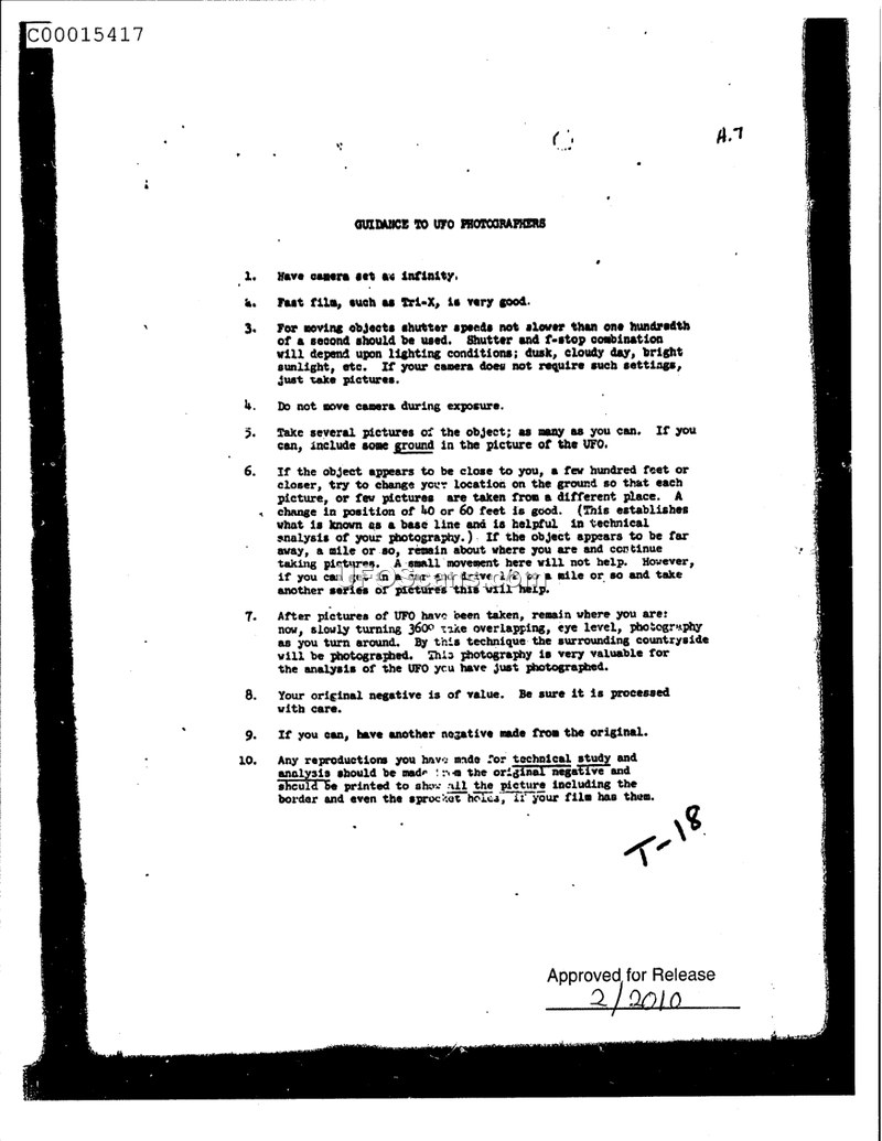 GUIDANCE TO UFO PHOTOGRAPHERS