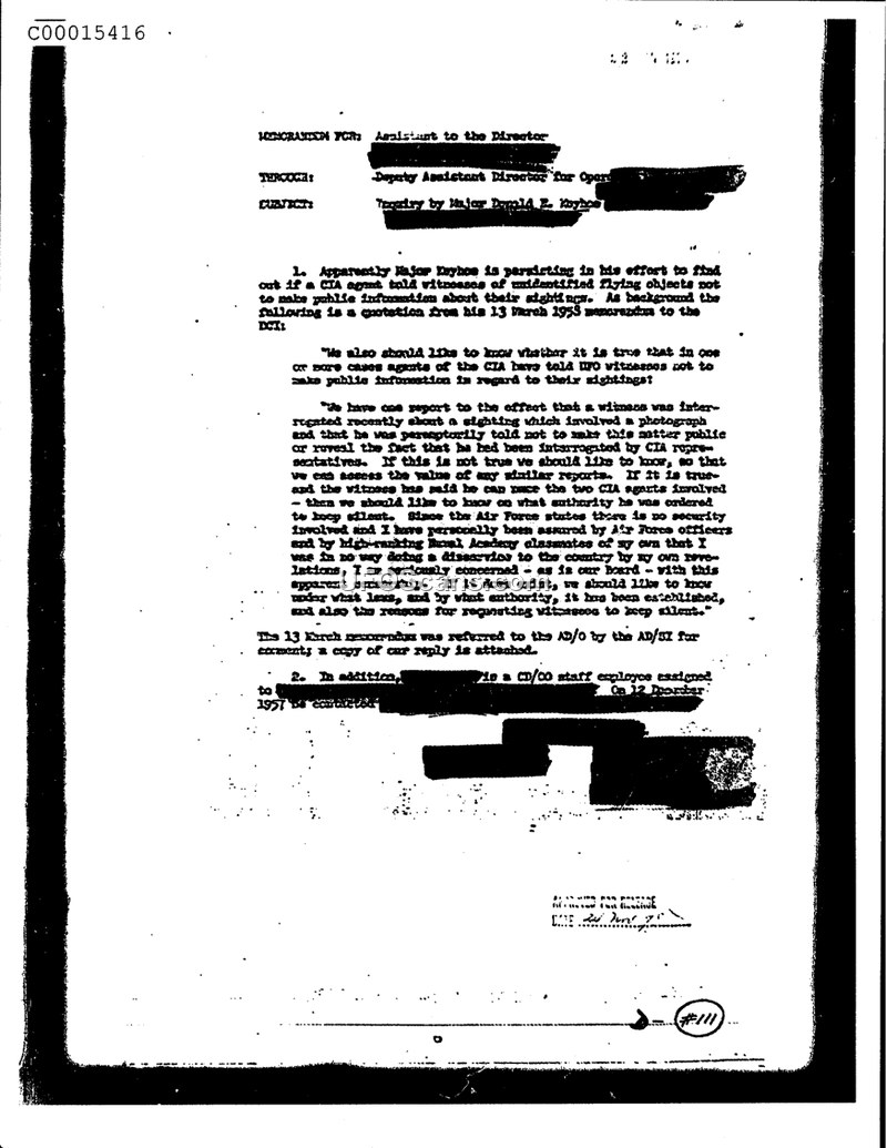 The Agency has no record of ordering any UFO witness to remain silent.