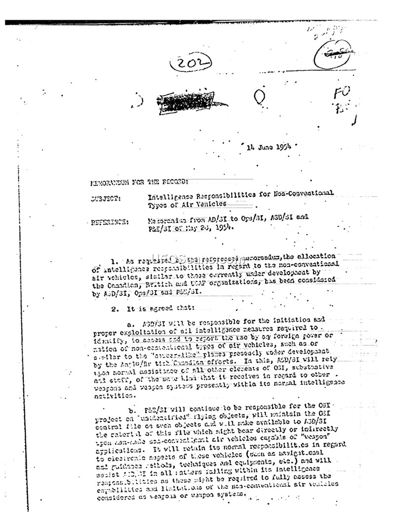 P&E/3I will continue to be responsible for the CSI project on 'unidentified' flying objects, will maintain the CSI central file on such objects and will make available to ASD/3I the material of this file which might bear directly or indirectly upon man-made non-conventional air vehicles capable of 'weapon' applications.