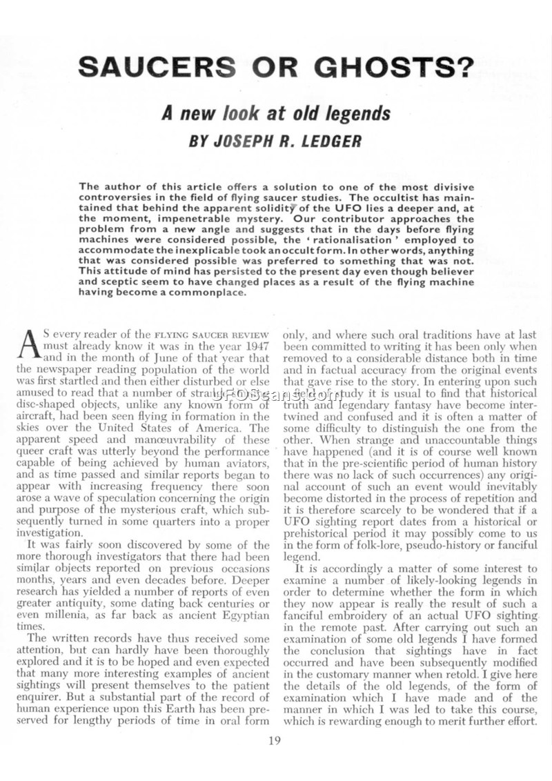 Saucers or Ghosts? A new look at old legends