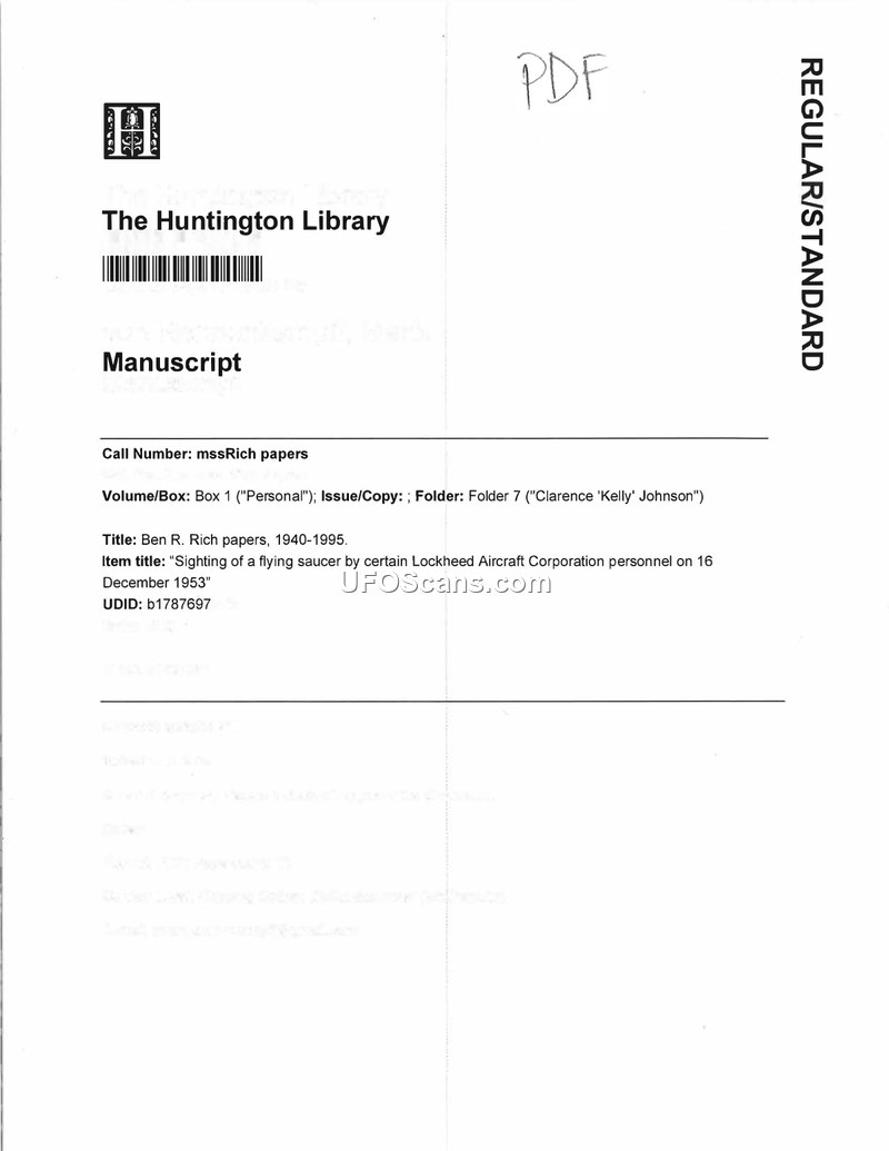 Lockheed Aircraft Corporation personnel, including Chief Engineer Clarence L. Johnson, reported observing an unidentified aerial object on December 16, 1953. The reports were formally submitted to the Air Technical Intelligence Center for scientific review.