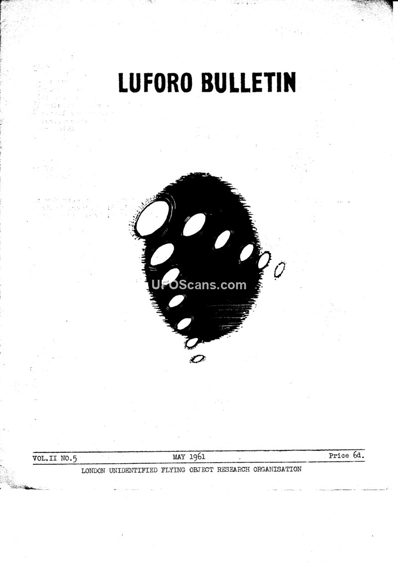 This bulletin from the London Unidentified Flying Object Research Organisation (LUFORO) provides a summary of UFO-related news, sightings, and technical research from May 1961. It includes reports on international sightings, instructions for building a magnetic UFO detector, and organizational updates for the London-based group.
