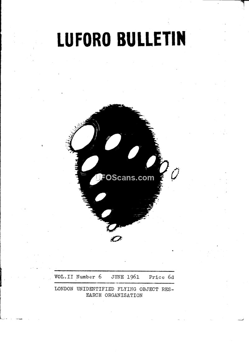 This issue of the LUFORO Bulletin, dated June 1961, serves as a compilation of reports, correspondence, and editorial commentary regarding Unidentified Flying Objects. The publication, issued by the London Unidentified Flying Object Research Organisation, details a series of sightings occurring in the British Isles, particularly on May 12, 1961, where multiple witnesses reported white, flashing objects in the sky. The bulletin includes accounts from various locations, including Hull, Nottingham, and Boreham Wood, noting the simultaneity of these events. The editor, Lawrence G. Moore, provides context on these sightings, contrasting them with official Air Ministry statements that often dismissed such reports as hoaxes or high-altitude balloons. A significant portion of the bulletin is dedicated to the discussion of 'hostile' UFO encounters. This includes a detailed analysis of the 1948 death of Captain Mantell, the 1959 crash of a Braniff Airways Lockheed Electra, and various incidents involving military personnel and aircraft. The bulletin explores the theory that some UFOs may be extraterrestrial in origin and potentially aggressive, while also presenting letters from readers who debate the methodology of UFO research, the role of 'contactees,' and the credibility of existing government reports. The document also features international reports from countries including Denmark, Switzerland, and Fiji, illustrating a global scope of interest. The bulletin concludes with administrative updates, including the formation of a new 'Contact Investigation Section' and a note on the organization's efforts to maintain unbiased scientific standards in the collection of evidence.