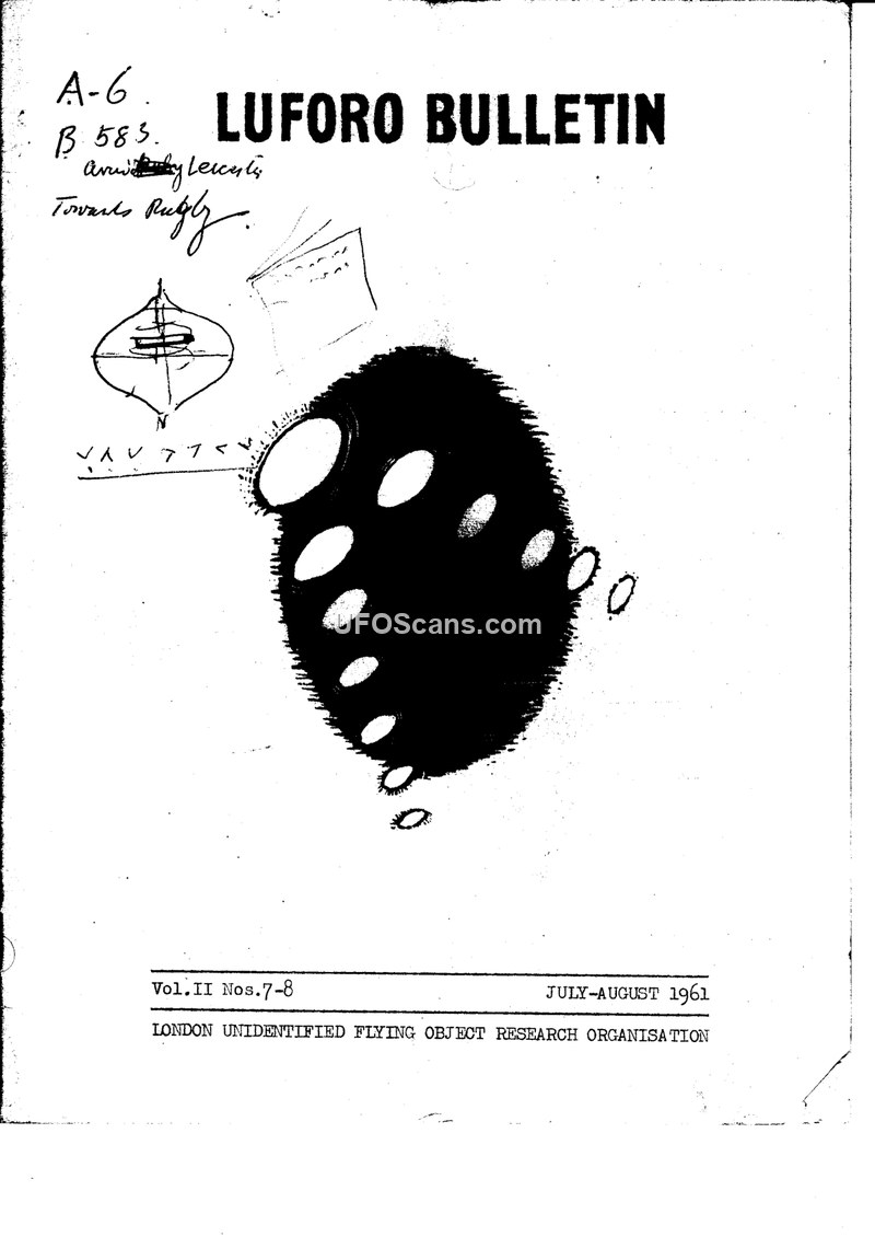 The LUFORO Bulletin (July-August 1961) outlines the organisation's mission to promote scientific UFO research and international cooperation. It provides analysis of 120 sighting reports and details specific case studies, advocating for rigorous investigation methods.