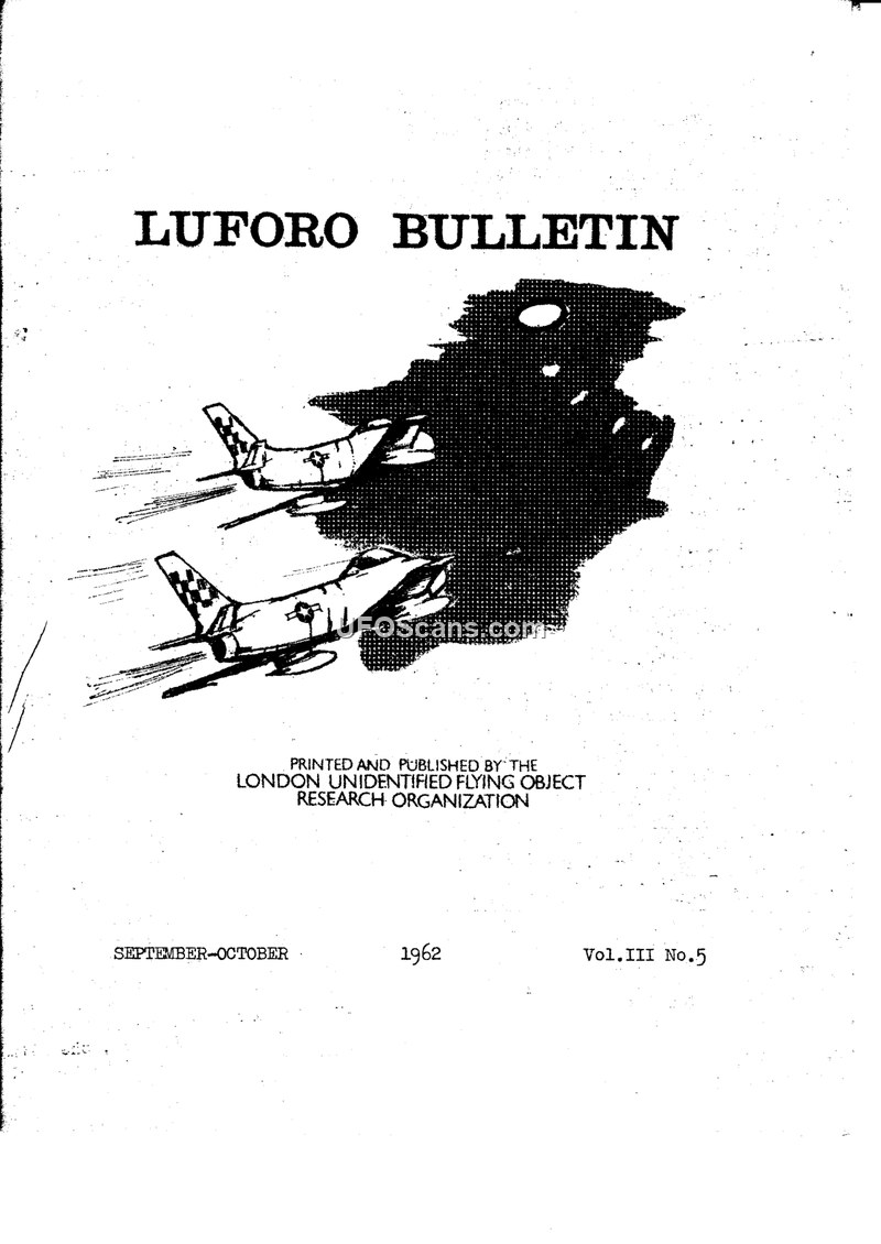 This document is the September-October 1962 issue of the LUFORO Bulletin, published by the London Unidentified Flying Object Research Organisation. The bulletin serves as a central hub for UFO research, providing organizational announcements, sighting reports, and analytical articles. A significant portion of the bulletin is dedicated to the formation of the British U.F.O. Association, which was inaugurated on September 22, 1962, to coordinate research efforts across various regional societies. The bulletin includes several sighting reports, such as Mrs. Myra Jones's encounter with a luminous object in Moira, Richard A. Bury's observation of a peculiar object in Lancashire, and Mrs. E. Jordan's sighting of red discs over Nelson. Additionally, it features a detailed analysis of the 'Alex Birch photograph,' which the organization considers unique. The bulletin also covers international news, including James W. Moseley's visit to the Aerospace Technical Intelligence Centre at Wright-Patterson Air Force Base and a report on a contact claim in the U.S.A. involving Robert Todd. John Cleary-Baker contributes an article on evaluating UFO reports, stressing the importance of skepticism and the application of scientific methods to avoid the pitfalls of the 'Saucer Cult.' The bulletin concludes with a Chairman's Annual Report, outlining the organization's goals for national coordination and the future of UFO research.