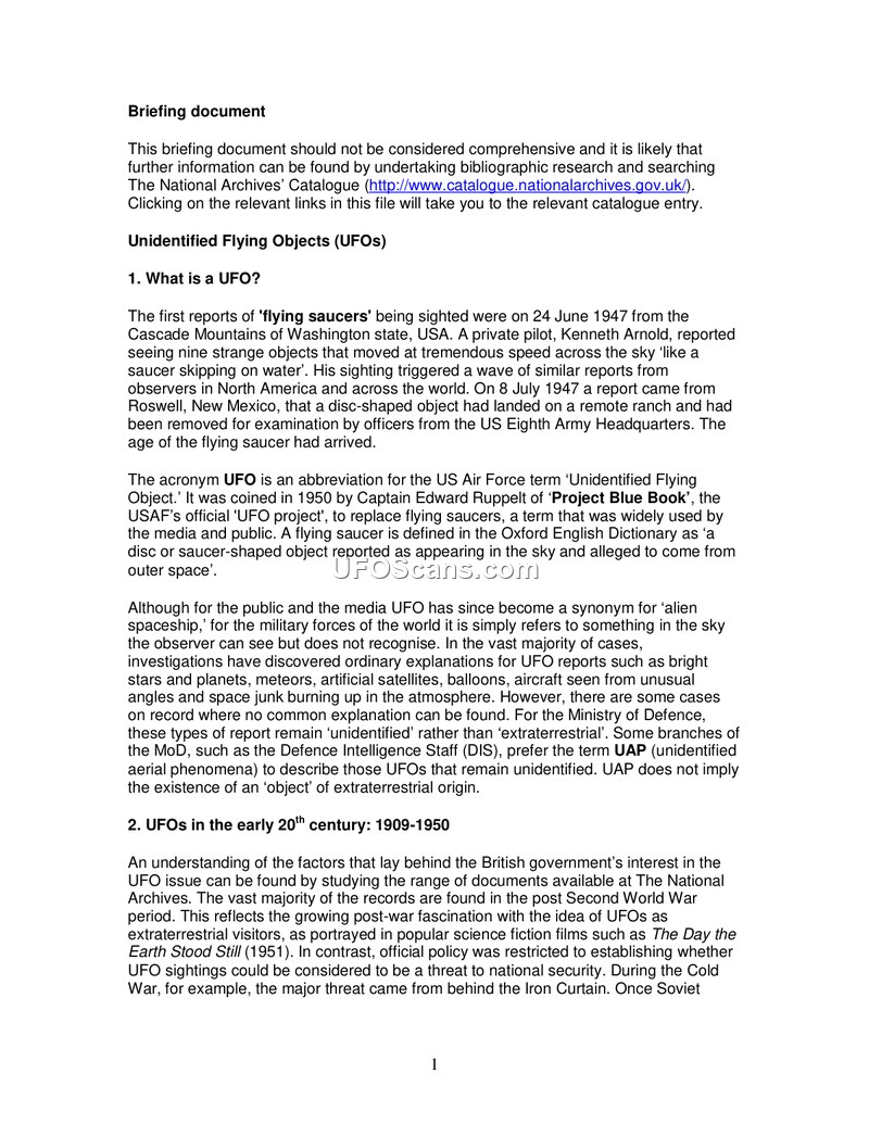 Briefing document: Unidentified Flying Objects (UFOs)