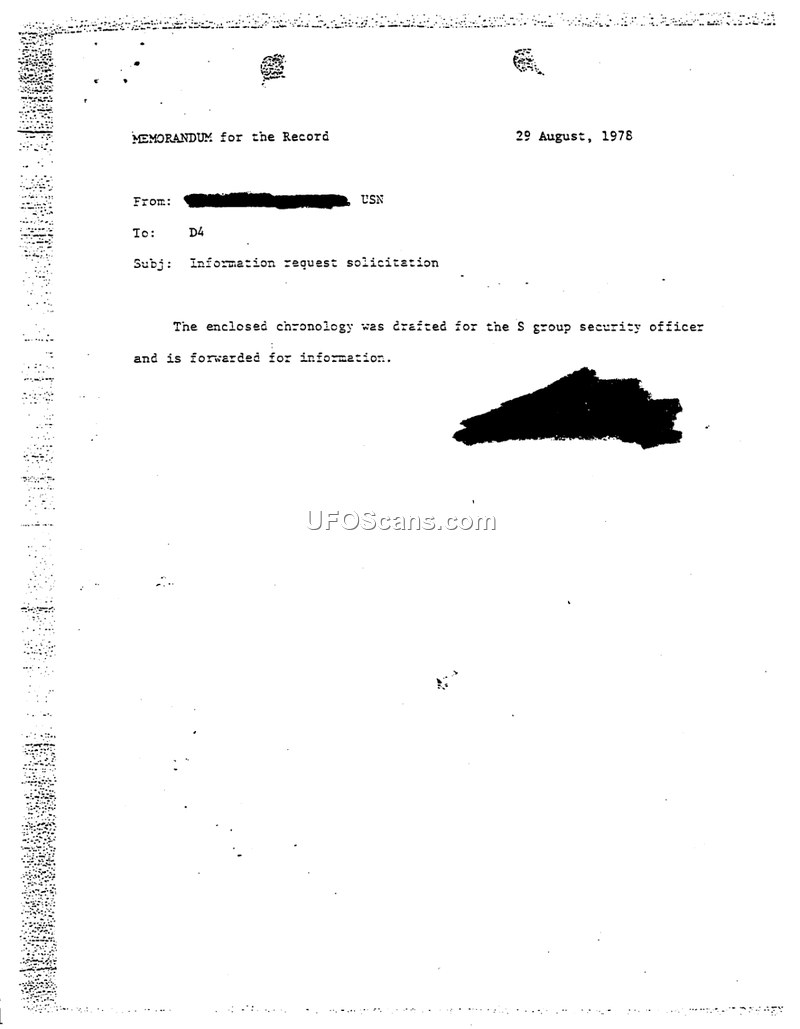 This memorandum, dated 29 August 1978, was authored by a US Navy officer assigned to the NSA. The document serves as a record of the author's recent activities and interactions regarding UFO-related matters. The author details their attendance at the Mutual UFO Network 1978 UFO Symposium in Dayton, Ohio, where they observed a presentation by a Mr. Stringfield and a Mr. Robert Barry. During this event, Barry displayed two letters that the author immediately suspected were fraudulent. The author subsequently contacted the NSA to report these letters and provided copies for review. The document also recounts a telephone conversation on 27 August 1978 with an individual who claimed to have worked for the NSA. The author clarified that NSA records did not support this claim, noting that the individual had actually served in the ASA from 1963 to 1966. The author expresses concern that this individual might attempt to portray them as an 'inside contact' at the NSA. Throughout the memorandum, the author emphasizes their commitment to maintaining a low profile and their limited ability to provide information on UFOs, noting that their work in COMSEC provides little opportunity to encounter such data. The author concludes by stating their intention to report any further requests for information.