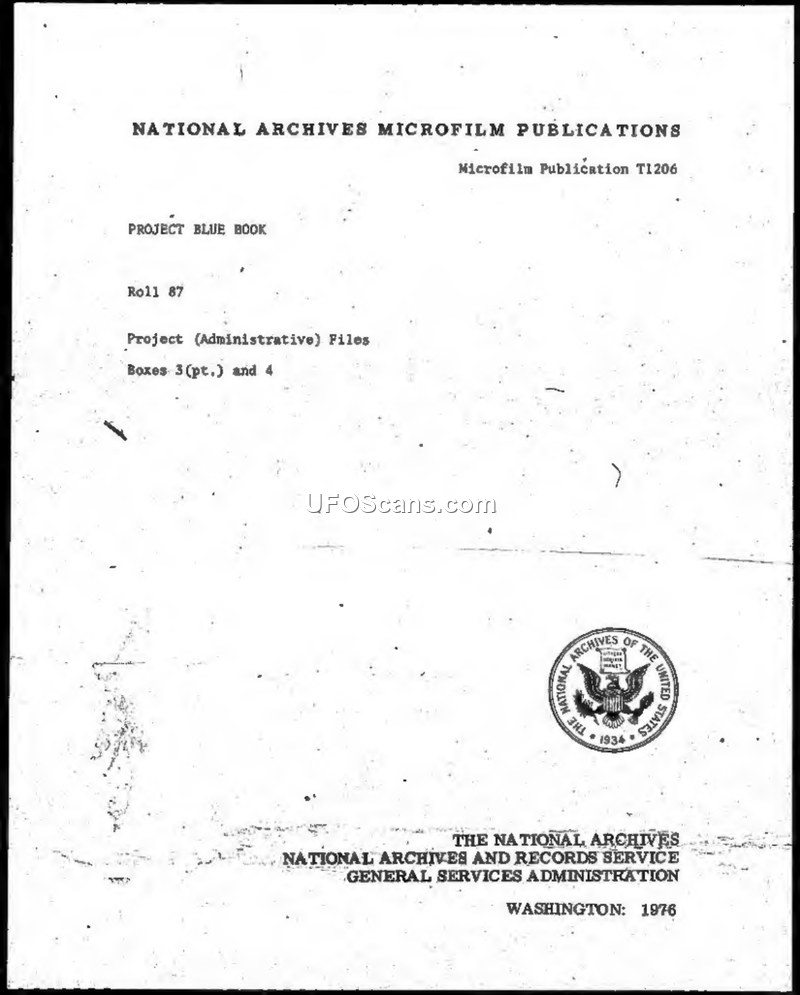 Project Blue Book Administrative Files, Roll 87, Boxes 3 and 4