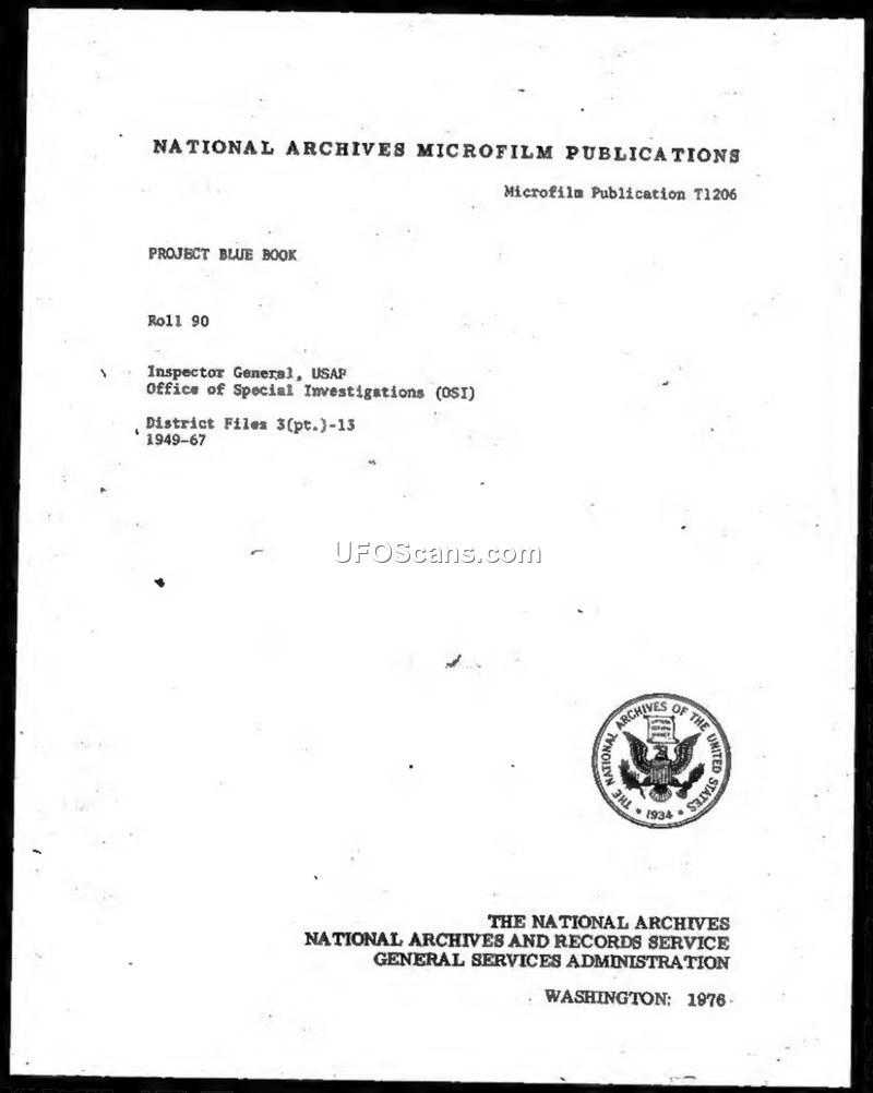 Project Blue Book Roll 90: Inspector General, USAF Office of Special Investigations District Files 1949-1967