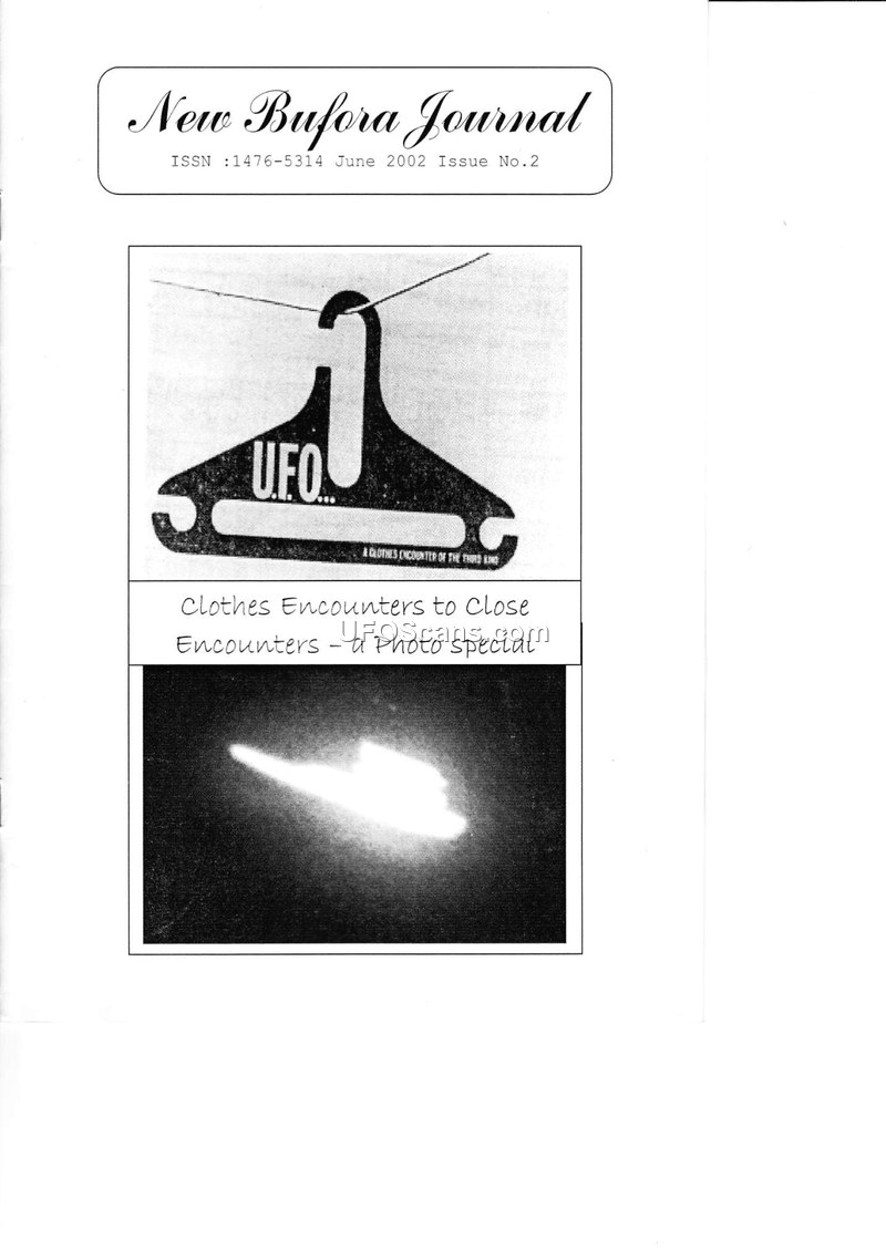 The New Bufora Journal, Issue No. 2 (June 2002), serves as a comprehensive publication for the British UFO Research Association (BUFORA). The journal covers a wide array of topics, ranging from historical airship sightings in 1897 to contemporary investigations into UFOs and their potential links to psychic phenomena. Editor Norman Oliver leads the issue with an editorial discussing the legitimacy of 'channelling' as a subject for UFO research, arguing that the enigma cannot be studied in isolation from other anomalous experiences. The journal features a detailed account of the 1897 'Adam and Eve' airship sighting in Springfield, Missouri, as reported by W.H. Hopkins. Another significant section is dedicated to the 'Brown Mountain Lights' in North Carolina, detailing the experiences of Ralph Lael, who claimed to have made contact with 'Light-Beings' living in crystal rooms beneath the mountain. The journal also includes a report by Alan Hilton on a potential abduction case involving a 'power cell' recovered from a UFO, which was identified as a pyrite cube. Brian Allan contributes an article on 'Talking to the Alien,' exploring the process of channelling and the 'Council of Nine.' A notable portion of the journal is devoted to the intersection of UFO research and the 'PSI Interface,' with contributions from Manfred Cassirer, Stephen Gamble, Elsie Oakensen, and John Spencer. The journal also documents a visit by Malcolm Robinson to a meeting of the British Sceptic Society, highlighting the importance of researchers engaging with sceptics to maintain scientific rigor. Throughout the issue, there is a recurring theme of caution regarding the use of regressive hypnosis, with contributors sharing personal experiences of how it can lead to the implantation of false memories. The journal also provides updates on BUFORA's activities, including the 'UFO Weekend' at Hourne Farm and the 'Ufocall' information service. The issue concludes with a photo feature showcasing various anomalous images, including the 'Evora Microbe' and other UFO-related photographs, and provides information on how members can contribute to the association's ongoing research efforts.
