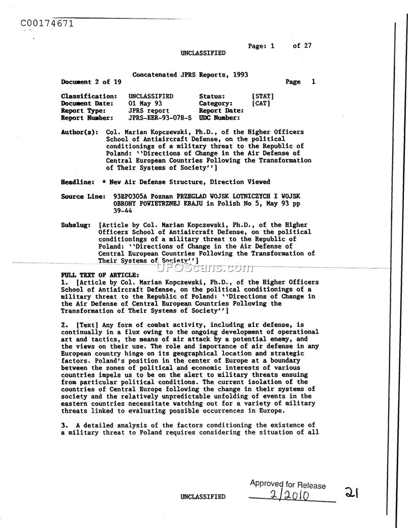 This document, authored by Col. Marian Kopczewski of the Higher Officers School of Antiaircraft Defense, provides a strategic assessment of the air defense requirements for Poland in the post-Warsaw Pact era. Writing in May 1993, Kopczewski argues that the geopolitical landscape of Central Europe has shifted, rendering the previous collective air defense model of the Warsaw Pact obsolete. The author contends that Poland, situated at a critical boundary between political and economic zones, must now prioritize the development of a sovereign, flexible air defense system. The report outlines the necessity of maintaining a dual-purpose system: one capable of peacetime monitoring and deterrence against accidental or terrorist threats, and another prepared for wartime combat against potential aggression. Kopczewski highlights that the Eastern direction, specifically the former USSR, remains a primary concern due to its significant military infrastructure and aircraft numbers. Furthermore, the author notes the threat posed by the German Air Force's proximity and capabilities. The document advocates for a restructuring that simplifies the chain of command, integrates reconnaissance and fire teams, and emphasizes the importance of air defense as a fundamental component of national security. The author briefly references historical incidents, such as the 1983 shooting down of a Boeing 747 and the 1987 flight of Mathias Rust, to illustrate the dangers of errors in air defense readiness. Ultimately, the report serves as a policy recommendation for Poland to adapt its military posture to the new realities of European security, focusing on independent defensive strength and the ability to respond to diverse threats.