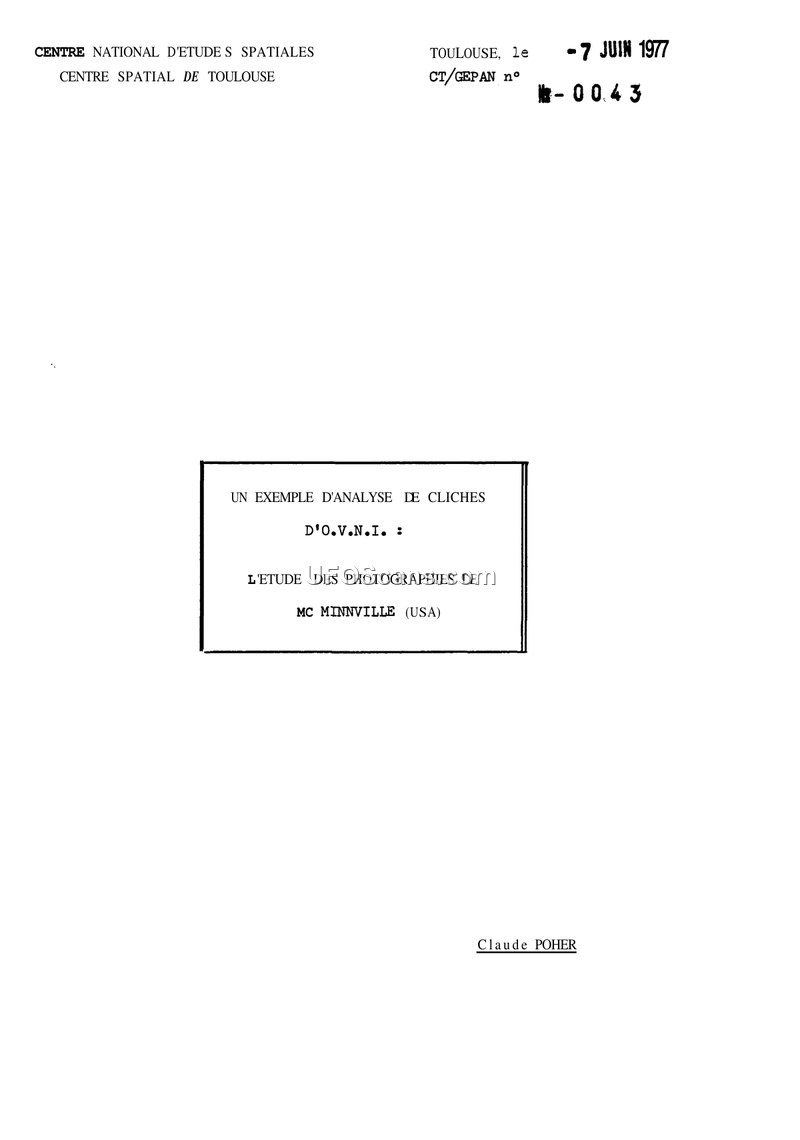 This document, issued by the Centre National d'Etudes Spatiales (CNES) in Toulouse on June 7, 1977, under the GEPAN (Groupe d'Etude des Phénomènes Aérospatiaux Non-identifiés) banner, provides a critical re-evaluation of the famous 1950 McMinnville, Oregon, UFO photographs. The report, authored by Claude Poher, serves as a technical critique of previous analyses conducted by Professor William K. Hartmann for the Condon Commission and later by Bruce S. Maccabee. The McMinnville case involved a couple who claimed to have photographed a metallic, disc-shaped object in broad daylight. Hartmann had originally concluded that the object was likely a distant, large, and extraordinary aerial vehicle. Later, critics Philipp Klass and Robert Sheaffer argued that the images were a hoax, suggesting the object was a small model suspended near power lines, and that the apparent brightness was due to lens defects or dirt. Poher's report systematically reviews the history of the case, including the involvement of the Condon Commission and the subsequent debates. Poher employs advanced photometric and geometric analysis, utilizing a micro-densitometer to examine the original negatives. He argues that while Hartmann and Maccabee's photometric measurements were detailed, their interpretations were flawed. Poher concludes that the object was, in fact, a small, translucent model suspended by a thin, invisible wire from electrical cables. He supports this by demonstrating that the geometric perspective and the photometric data are consistent with a small object close to the camera rather than a large, distant one. Furthermore, Poher includes additional annexes discussing other cases, such as the San Jose de Valderas and Aluche observations, which he also dismisses as hoaxes linked to the 'Ummo' affair. The document concludes that the McMinnville photographs are a 'supercherie' (hoax) and emphasizes the importance of rigorous, scientific analysis of daylight photographs, noting that such cases often reveal human-made fabrications rather than extraordinary phenomena. Poher expresses frustration with the lack of authentic daylight UFO photographs and calls for investigators to prioritize the acquisition of original negatives to avoid being misled by hoaxes.