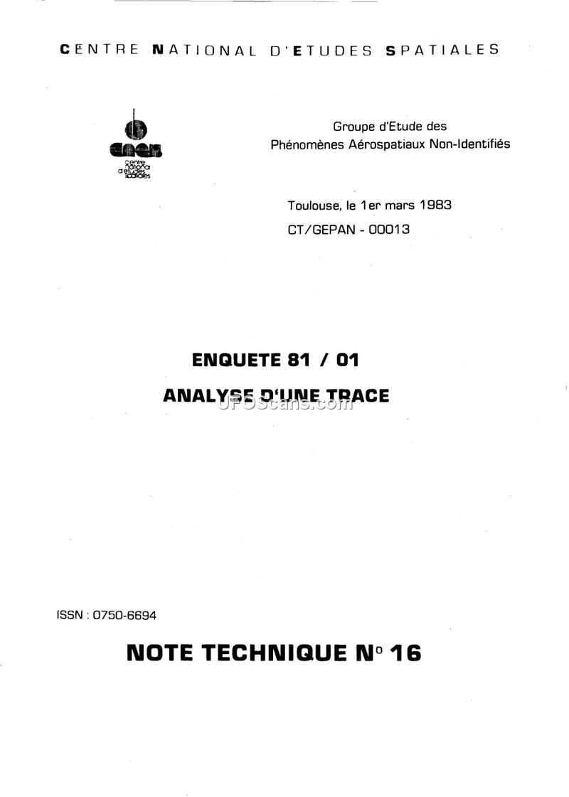ENQUETE 81 / 01 ANALYSE D'UNE TRACE - NOTE TECHNIQUE N° 16