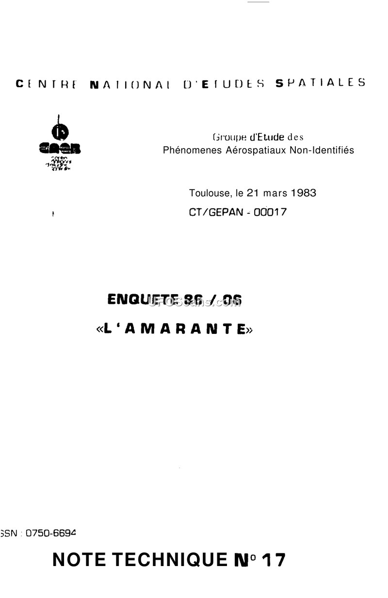 ENQUETE 86 / 06 «L'AMARANTE» NOTE TECHNIQUE No 17