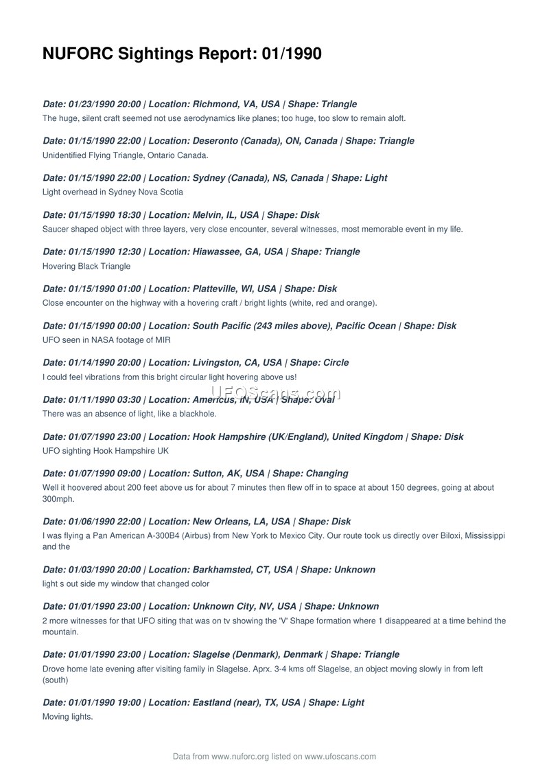 NUFORC Sightings Report: 01/1990