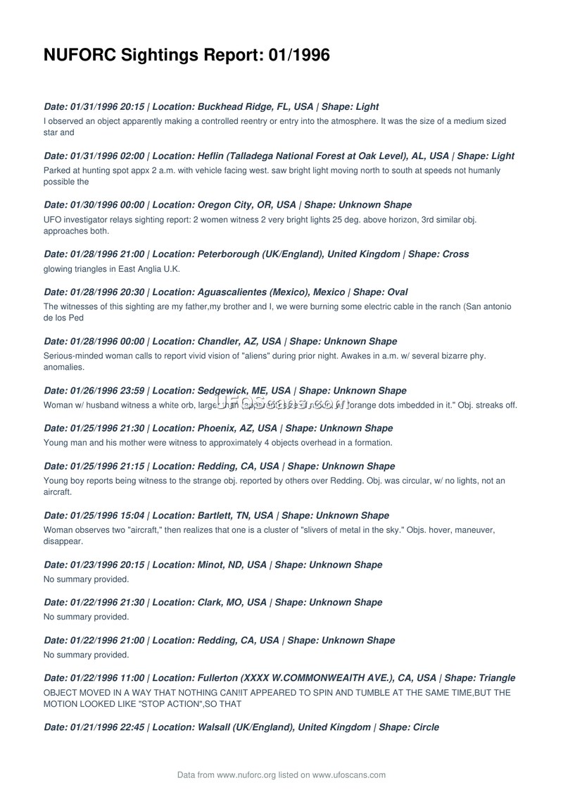 NUFORC Sightings Report: 01/1996