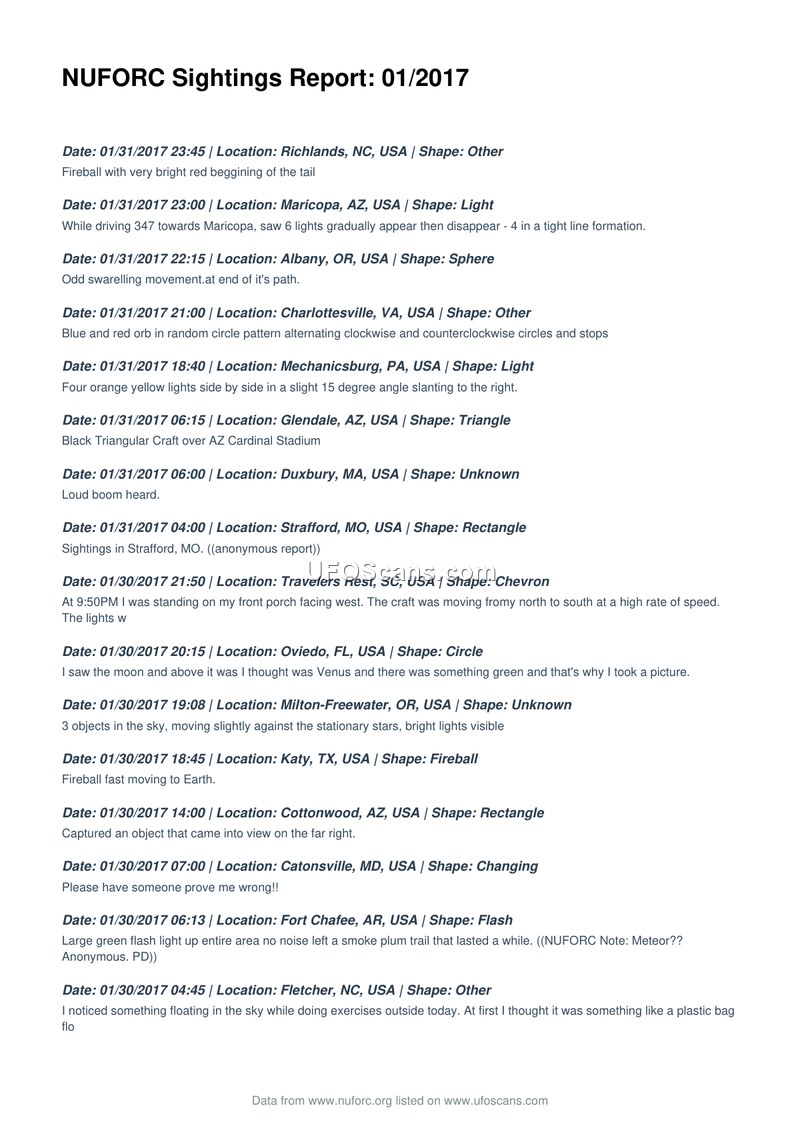 NUFORC Sightings Report: 01/2017