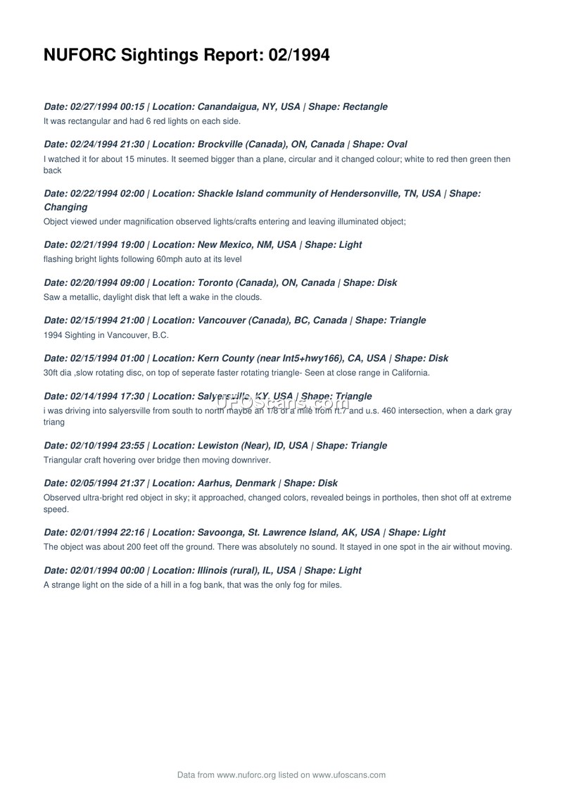 NUFORC Sightings Report: 02/1994