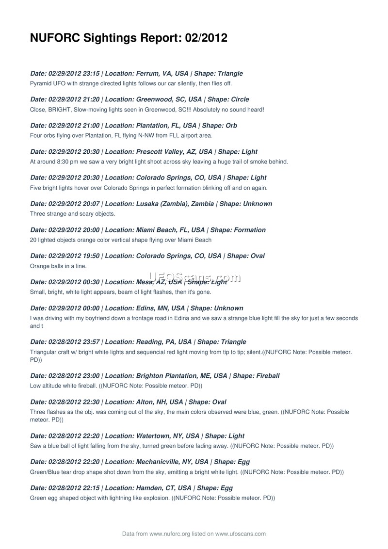 NUFORC Sightings Report: 02/2012