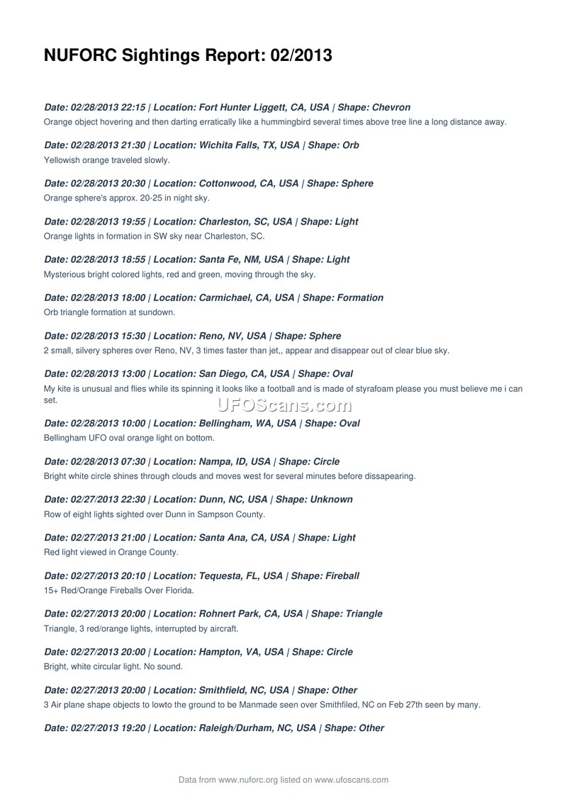 NUFORC Sightings Report: 02/2013