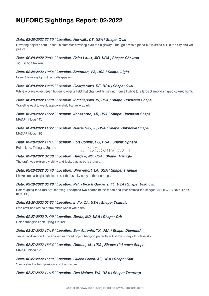 NUFORC Sightings Report: 02/2022