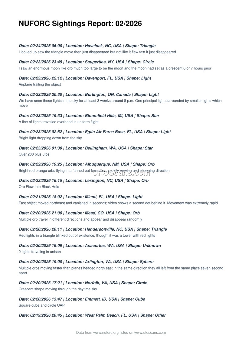 NUFORC Sightings Report: 02/2026