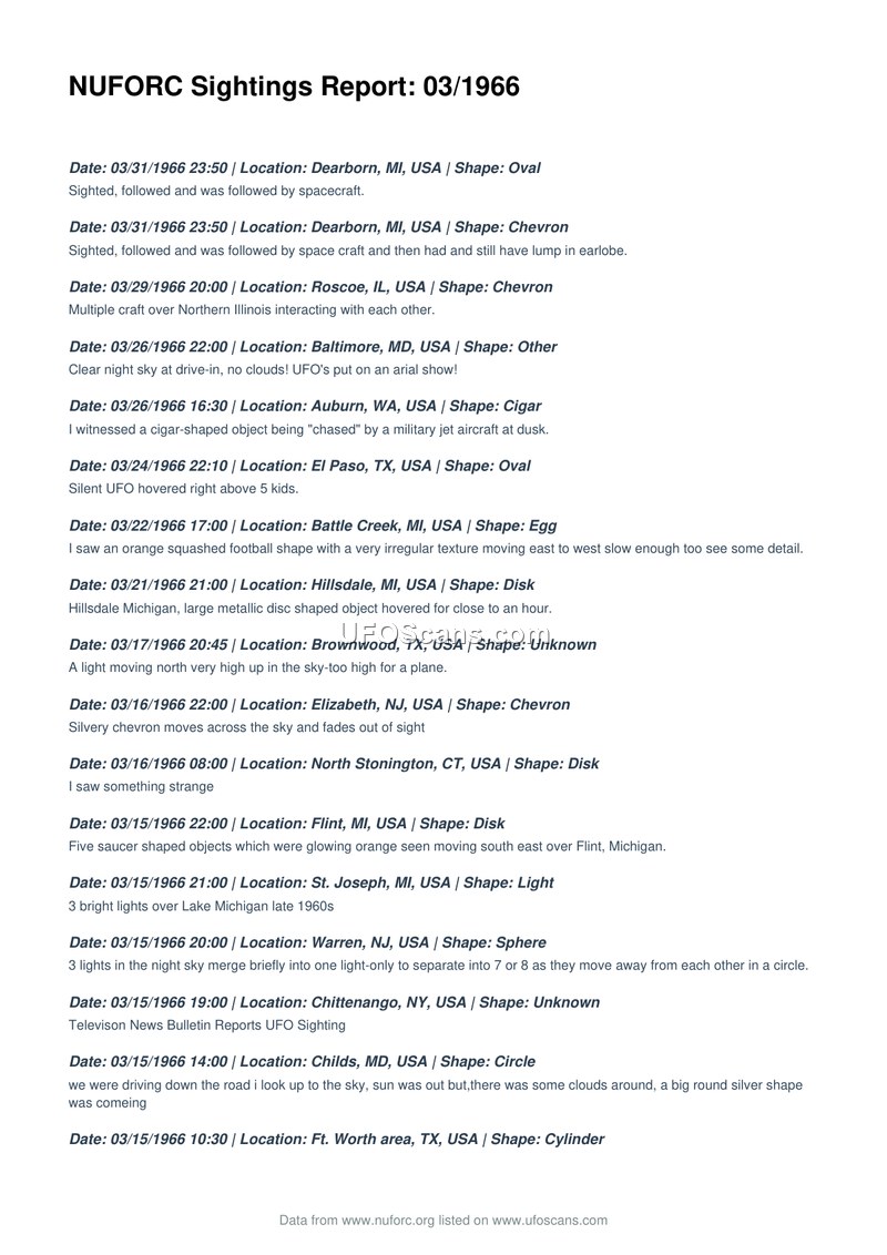 NUFORC Sightings Report: 03/1966