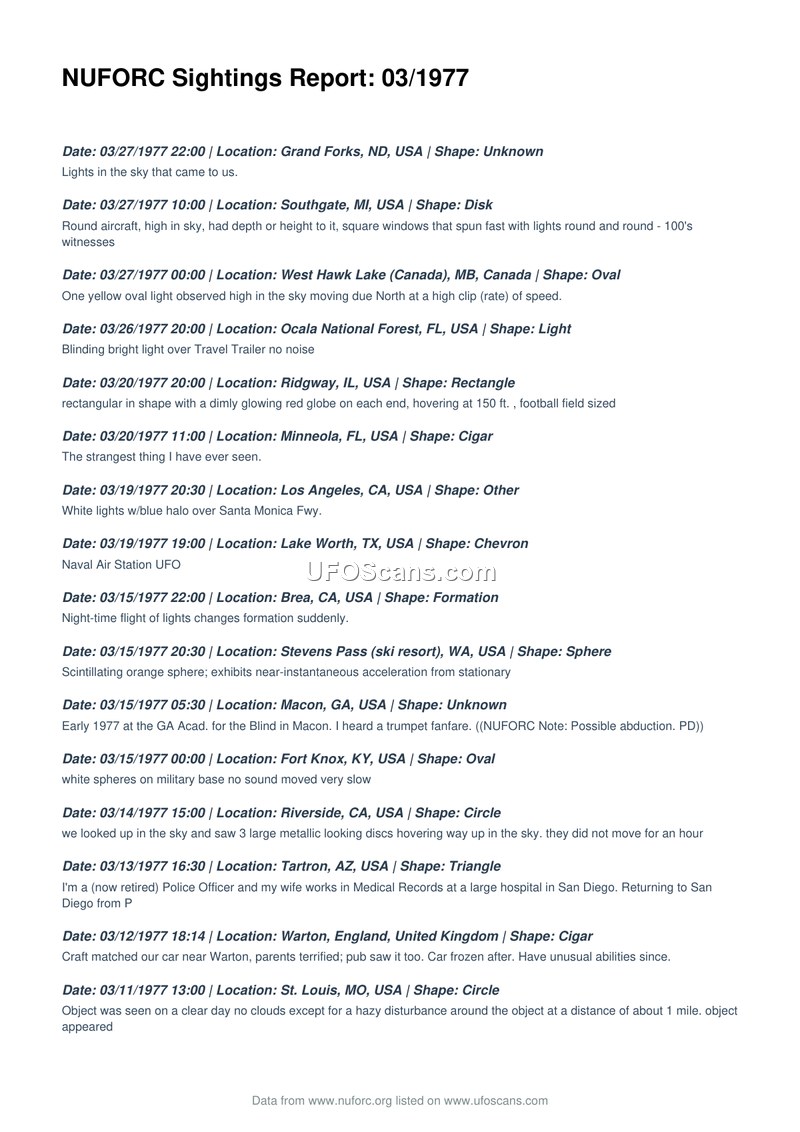 NUFORC Sightings Report: 03/1977